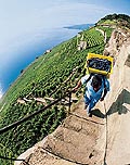 En regardant Lavaux depuis le lac Léman, le vigneron Potterat disait simplement : « C'est la plus belle des cathédrales ». Situé entre Lausanne et Vevey Montreux, le vignoble de Lavaux est un monument de pierres de 14 kilomètres de long, une mosaïque de terrasses accrochées dans une pente parfois vertigineuse. Imaginez un rempart de vignes grimpant à l'assaut du ciel. Par endroits, 400 mètres séparent les rives du lac où les premiers ceps ont les pieds dans l'eau et les plus hauts perchés, juste avant que la viticulture abandonne le terrain aux forêts et aux champs cultivés de l'arrière-pays.