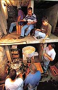 Dans les caves, les odeurs sont plus entêtantes. C'est l'heure de la mise en bouteille. À Cully, chez les Potterat, les membres disponibles des deux familles se mobilisent et font la chaîne, pour laver les verres, coller les étiquettes et ranger les bouteilles... L'ambiance, comme chaque fois que les vignerons travaillent en équipe, est en même temps laborieuse et joliment festive.