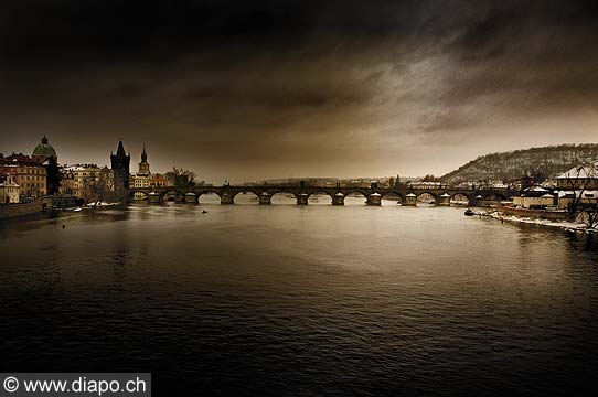 9505 - Photo: Pont Charles à Prague et la rivière Vltava - Pragua, Karluv most