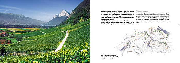 Du côté du texte, Pierre Thomas, s'offusque du peu de publication que l'on trouve sur la vigne et le vin suisses depuis une douzaine d'années. "Connaissance des vins suisses (Payot, 1992) est le dernier ouvrage paru sur le sujet. Et pourtant, depuis 12 ans, la Suisse connaît une véritable révolution en matière de vins avec l'apparition de vrais dégustateurs, d'excellents vignerons qui osent planter une kyrielle de nouveaux cépages ou d'anciens plants peu connus; on détermine les caractéristiques des sols et des climats pour mieux définir les terroirs et leurs potentialités; on prend conscience qu'on peut faire du très bon vin en Suisse". Ces très bons vignerons, Pierre Thomas en a répertorié 125 en fin d'ouvrage. Le journaliste s'est penché sur les six régions viticoles de Suisse en apportant chaque fois un éclairage historique et géographique. Un texte sobre présente surfaces et cépages en fournissant les caractères du terroir et les ambiances des caves, en précisant l'importance et l'évolution de cette tranche uvale du secteur primaire.