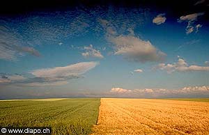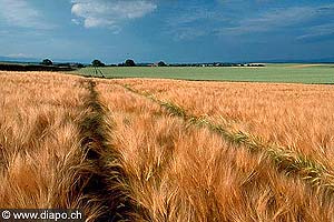 3067 - L'orge destiné au fourrage du bétail, sert également à la fabrication du malt, de la bière et de la vodka.Ici au pied du Jura, ce champ d'orge fera certainement place à du colza l'année suivante.