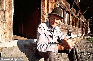 3073 - Dans les campagnes, les domaines se transmettent de père en fils.Devant sa ferme de 1781, Jean Clerc, paysan à Hauteville FR, est l'exemple même de cette tradition.