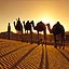 Commander le poster du Sahara « la caravane de chameaux » impression de haute qualité avec vernis brillant sur l'image et vernis mat sur le noir. Texte en 5ème couleur argent.