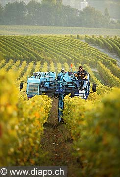 9837 - Photo : Suisse, vignoble de Genève - vendange en machine - Geneva, switzerland, swiss wines - wein, schweiz