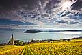 HD 10457 - Photo : le vignoble du Vully Vaudois, sentier viticole de Vallamand et le lac de Morat