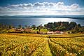 HD 10458 - Photo : le vignoble du Vully Vaudois, sentier viticole de Vallamand et le lac de Morat
