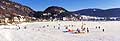 HD 10442 - Photo: Suisse - un homme marche sur le Lac de Joux gelé en hiver