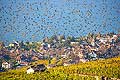 10401 - Photo :Vol d'étourneaux sur Cully, Suisse, canton de Vaud, vignoble de Lavaux