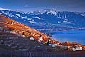 12833 - Photo: Village de Rivaz - Suisse, canton de Vaud, vignoble de Lavaux sous la neige et le Lac Léman - UNESCO
