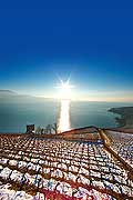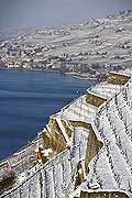 13102 - Photo : Suisse, canton de Vaud, vignoble de Lavaux sous la neige et le Lac Léman