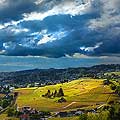 10394 - Photo : Suisse, canton de Vaud, Montagny, vignoble de Lavaux en terrasses en direction de Lausanne et le Lac Léman