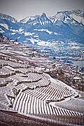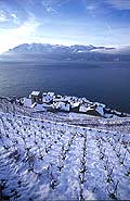 13101 - Photo : Suisse, canton de Vaud, vignoble de Lavaux sous la neige et le Lac Léman