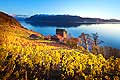 10995 - Photo : Suisse, canton de Vaud, Tour de Marsens, vignoble de Lavaux en terrasses, et le Lac Léman - UNESCO