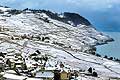 12835 - Suisse, canton de Vaud, vignoble de Lavaux sous la neige et le Lac Léman