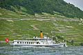 HD 10529 - Photo : Suisse, canton de Vaud, vignoble de Lavaux en terrasses, bateau de la CGN et le Lac Léman