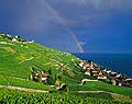 HD 9913 - Photo : Suisse, canton de Vaud, vignoble de Lavaux en terrasses, arc-en-ciel et le Lac Léman