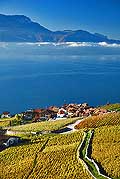 10532 - Photo : Suisse, canton de Vaud, vignoble de Lavaux en terrasses entre Chexbres et Vevey et le Lac Léman