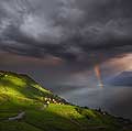HD 9918 - Photo : Suisse, canton de Vaud, vignoble de Lavaux, arc-en-ciel, Epesses et le Lac Léman