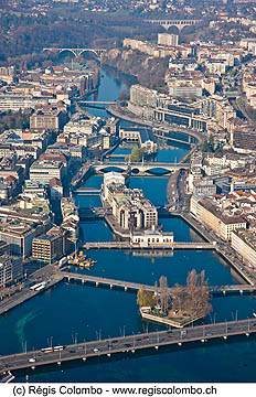 13729 - Genève vue du ciel, Geneva, Pont du Mont Blanc, Lac Léman